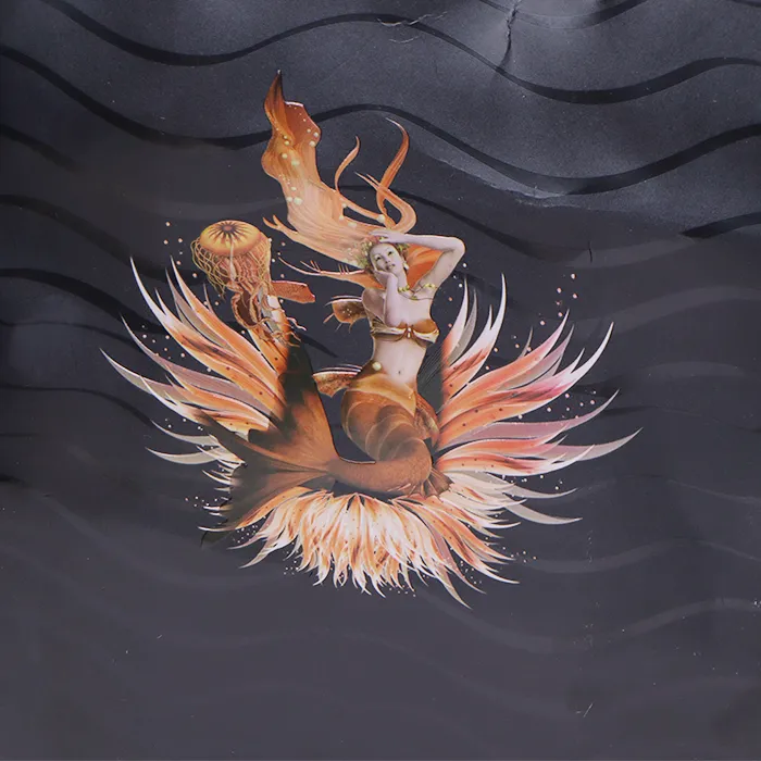 Dati, ang metallic sheen at makinis na texture ay madalas na nauugnay sa hot foil stamping. Gayunpaman, ang Apparel Shopping Bag na ito ay makabagong gumagamit ng proseso ng pag-print at embossing, na pinapalitan ang tradisyonal na hot foil stamping upang lumikha ng bagong visual at tactile na karanasan. Ang pag-print at embossing ay nagbibigay-daan para sa higit pang mga gradasyon ng kulay. Ang mga customer ay malayang makakapag-customize ng mga kulay ng pag-print, matte o gloss finish, transparent o gradient effect, hindi tulad ng tradisyonal na hot foil stamping na limitado sa mga partikular na ginto, pilak, tanso, o may kulay na mga foil. Ang pag-print at embossing ay nagbibigay-daan para sa mga kumbinasyon ng maraming kulay. Ang proseso ng embossing ay nagbibigay din ng text, logo, o pattern ng three-dimensional na epekto, na nagpapataas ng interaktibidad ng packaging.